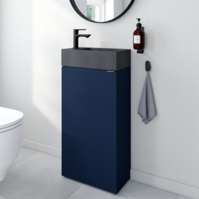 Meuble lave-mains bleu nuit mat l.44 cm Imandra + plan vasque béton gris, GoodHome