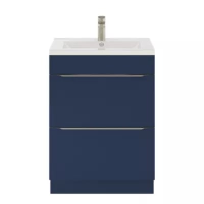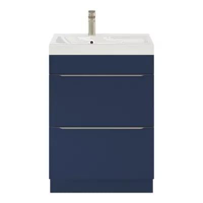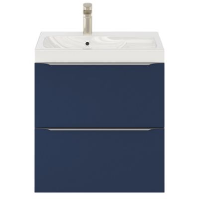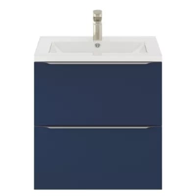 Meuble vasque suspendu bleu nuit mat l.60 cm Imandra + plan vasque blanc résine Mila, GoodHome