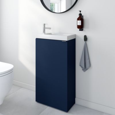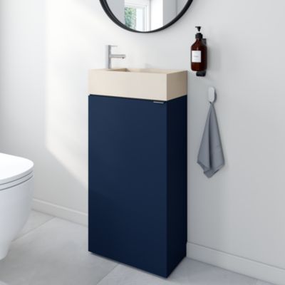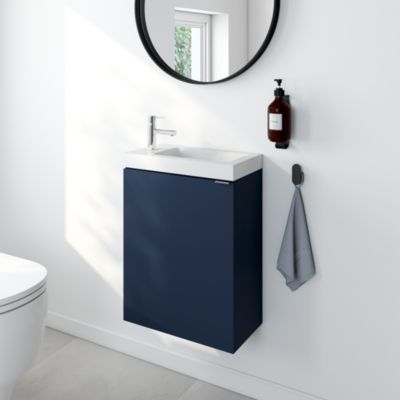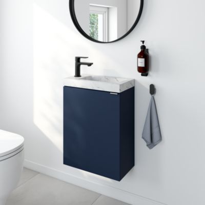 Meuble lave-mains suspendu bleu nuit mat l.44 cm Imandra + plan vasque blanc résine Beni, GoodHome