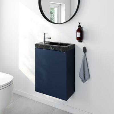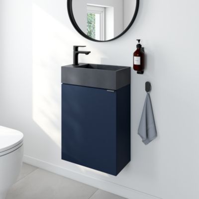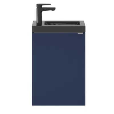 Meuble lave-mains suspendu bleu nuit mat l.44 cm Imandra + plan vasque noir céramique Nira, GoodHome