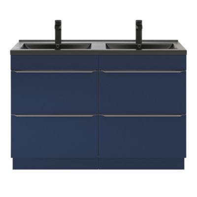 Meuble vasque à poser bleu nuit mat l.120 cm Imandra + plan double vasque noir résine, GoodHome