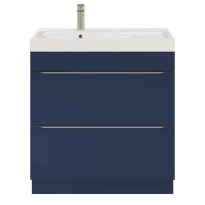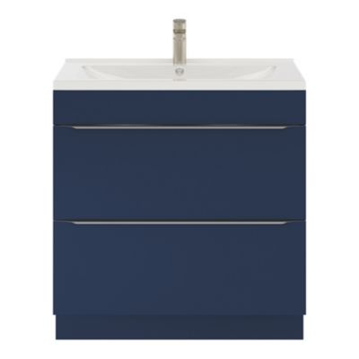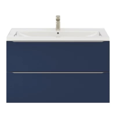 Meuble vasque suspendu bleu nuit mat l.80 cm Imandra + plan vasque blanc résine Mila, GoodHome