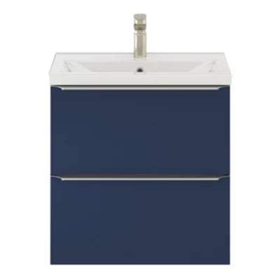 Meuble vasque suspendu bleu nuit mat l.60 cm Imandra + plan vasque blanc céramique Nira, GoodHome