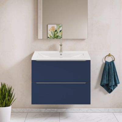 Meuble vasque suspendu faible profondeur bleu nuit mat l.60 cm Imandra + plan vasque blanc céramique, Nira GoodHome
