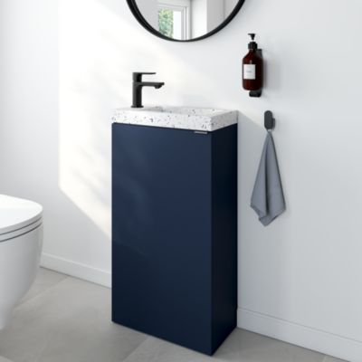 Meuble lave-mains bleu nuit mat l.44 cm Imandra + plan vasque terrazzo, GoodHome