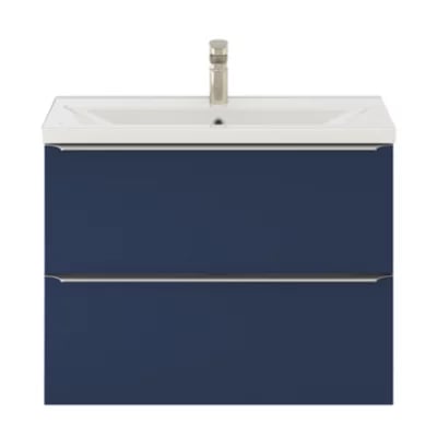 Meuble vasque suspendu bleu nuit mat l.80 cm Imandra + plan vasque blanc céramique Nira, GoodHome