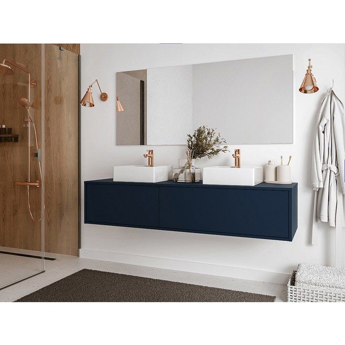 Meuble de salle de bain suspendu bleu nuit avec double vasque - L150 cm - ISAURE II
