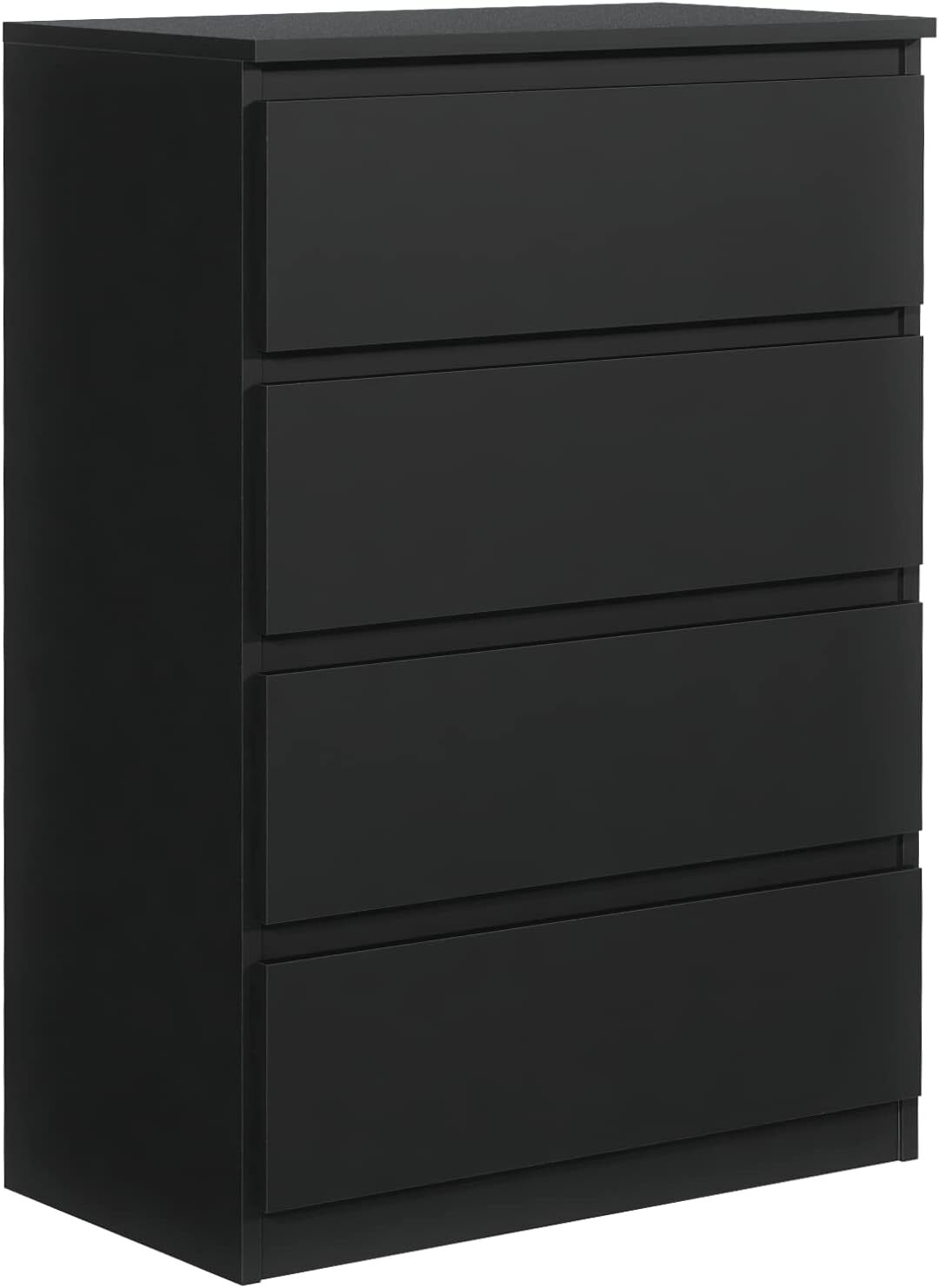 Commode Noir Mat avec 4 tiroirs 70 cm Meuble Chambre Adulte
