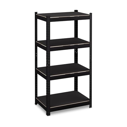 Relaxdays Étagère à Charge Lourde, HLP : 120x60x40 cm, 4 Niveaux, Acier, Meuble de Stockage, Atelier, Garage, Noire, Noir