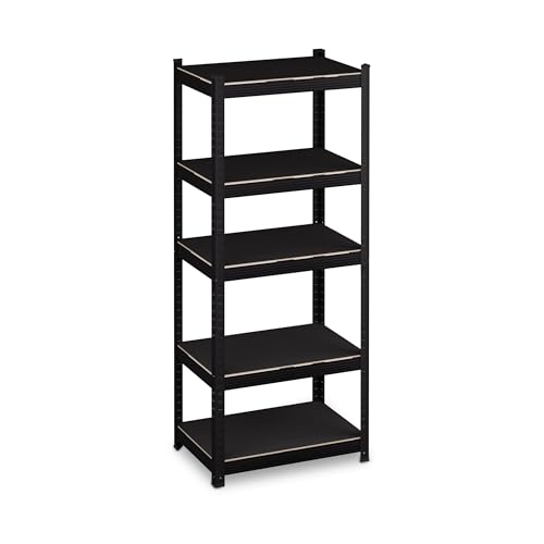 Relaxdays Étagère à Charge Lourde, HLP: 150x60x40 cm, 5 Niveaux, Acier, Meuble de Stockage, Cave, Atelier, Garage, Noire