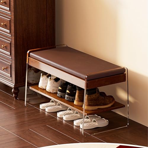 SQYHYTS 50-100cm Banc De Rangement Siège D'entrée Etroit avec Un Coussin Moelleux Et Un Espace De Rangement À Rabat Meuble Chaussure Bas Bois pour Dressing, Salon Et Chambre À Coucher,Walnut,50cm