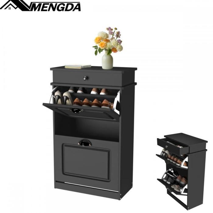 Meuble de Rangement à Chaussure-MENGDA-pour Entrée-2 Portes et 1 Tiroirs- grande capacité de rangement-82×52×23cm-Noir