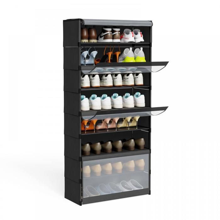 Meuble à chaussures 24 paires 3 étagères coloris noir panneau de particules meuble à chaussures noir