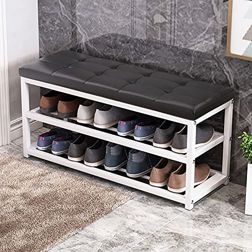 LMMIAOZ Banc Porte-Chaussures d'entrée avec Assise rembourrée, Meuble de Rangement à Chaussures à 3 Niveaux avec étagère métallique, Tabouret d'entrée pour se chausser Bottes et