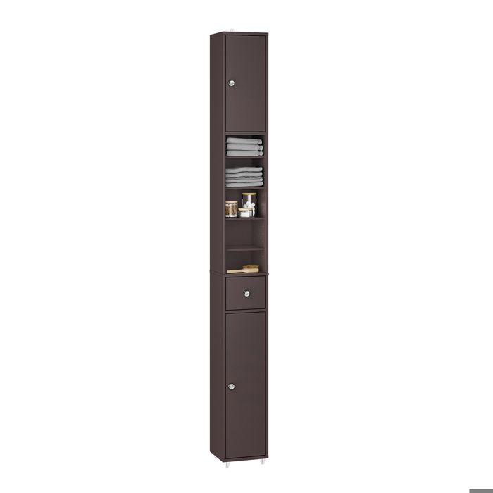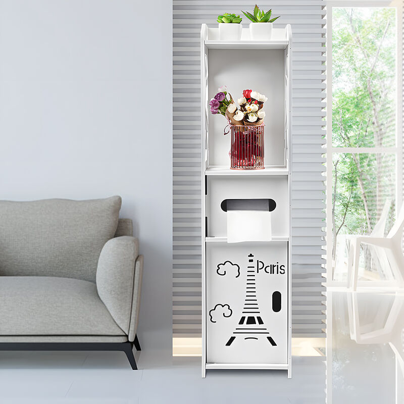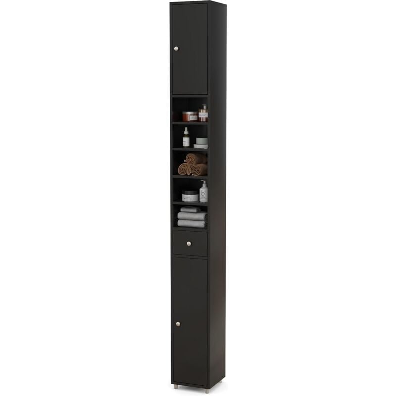 Colonne salle de bain meuble wc 2 portes 2 étagères tiroir niche porte-papier dim. 20x20x185cm blanc