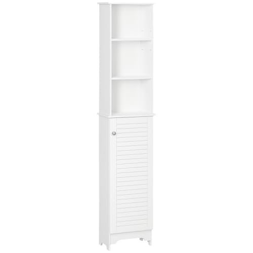 HOMCOM Meuble Colonne Salle de Bain 3 niches Placard Porte persienne 3 étagères MDF Panneaux de Particules Blanc