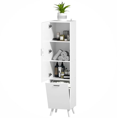 SoBuy Meuble Colonne avec Panier à Linge – Armoire de Salle de Bain Rangement Étroit Étagère de Salle de Bain Petit Meuble WC Placard Blanc 40x170x38 cm BZR124-W