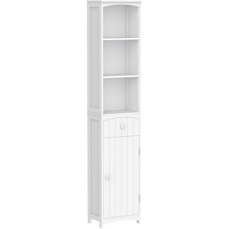 Meuble colonne salle de bain - HOMCOM - 2 portes, tiroir, compartiment ouvert et étagère réglable - bois - 31,5x29,7x171,5cm - blanc