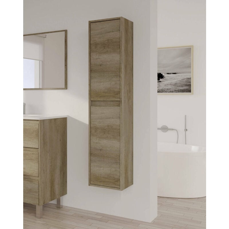 Meuble colonne de salle de bain suspendu TERRA VILLA noyer foncé 30 x 80 cm