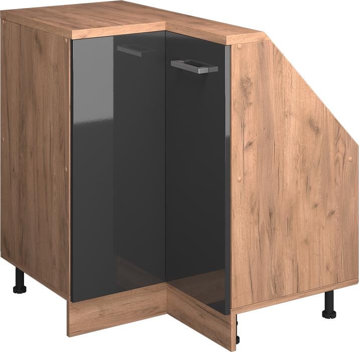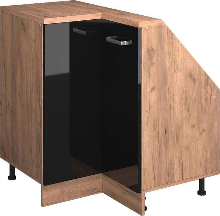 Vicco Meuble de cuisine d'angle pour combles R-Line, 75.6cm avec 1 porte, Noir Haute brillance/Blanc