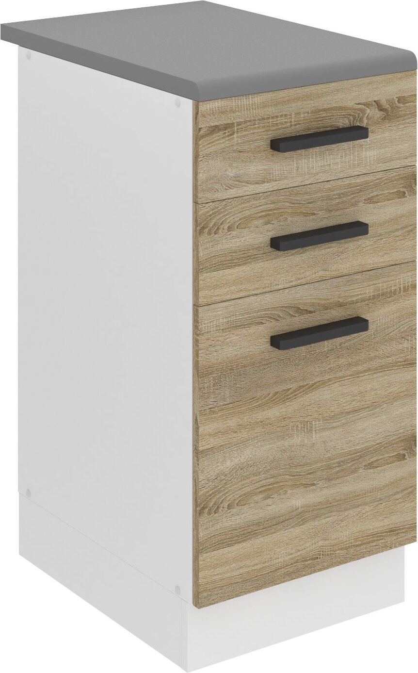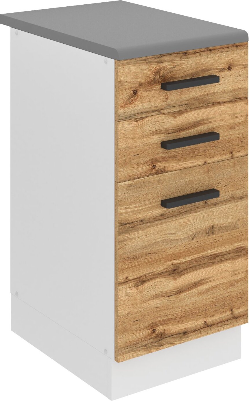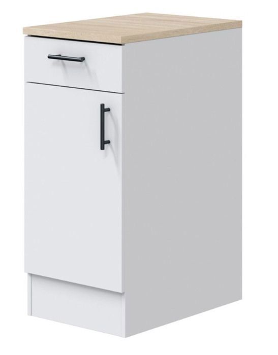 Meuble bas de cuisine avec plan de travail 1 porte + 1 tiroir coloris blanc brillant /chêne canadien
