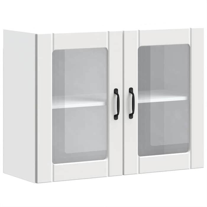 Armoire murale de cuisine, meuble rangement haut de cuisine avec porte en verre kalmar blanc ffd4865