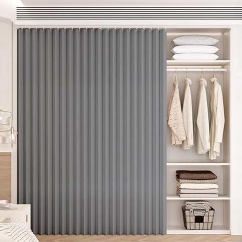 Aeovot Rideau Armoire Dressing Rideau Cache Placard sur Mesure avec Rail Coulissant - Meuble Rideau Cuisine Imperméable Anti-Poussière Rideaux D'armoires pour Étagères sous Evier(Gris)