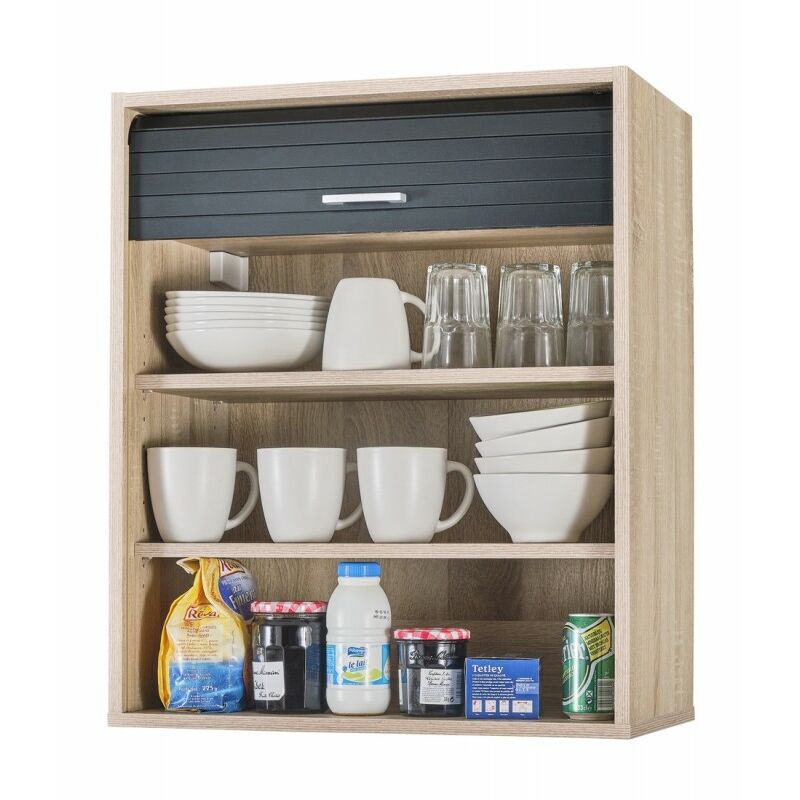 Les Tendances – Meuble mural de cuisine gris à rideau – Dimensions L 40 x H 72 cm – Panneaux mélaminés E1 – Rideau coulissant pour rangement pratique