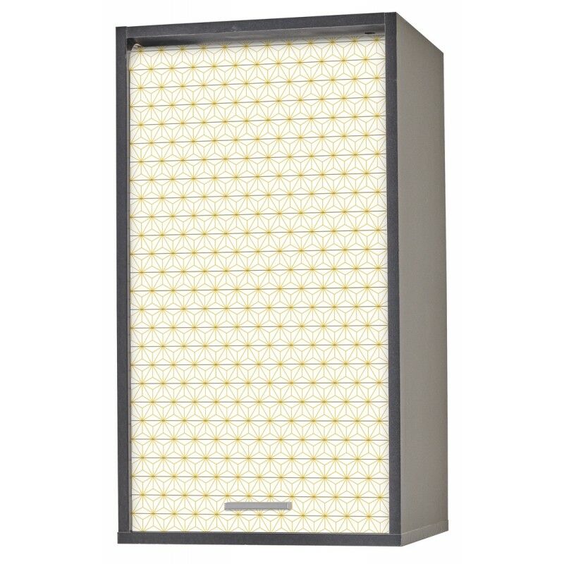 Beaux Meubles Pas Chers - Meuble haut de cuisine à rideau 40 cm noir imprimé jaune - cook
