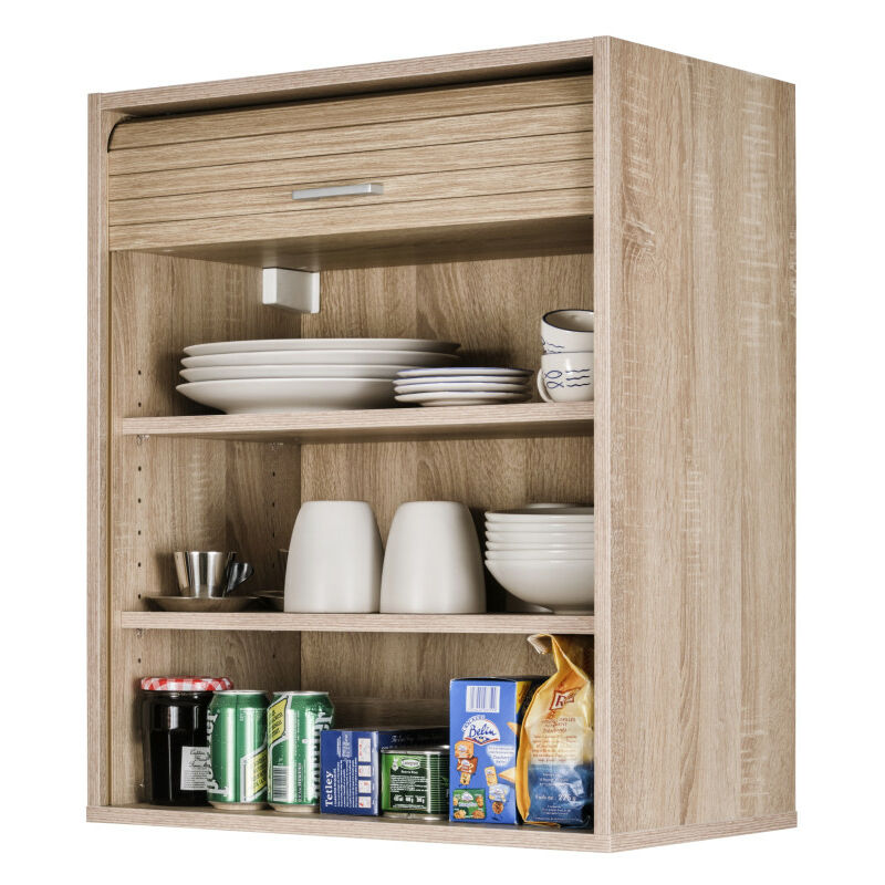 Beaux Meubles Pas Chers – Meuble de cuisine chêne avec rideau coulissant – 4 niches 54 x 76.6 x 35.4 cm – Panneaux mélaminés E1 – Installation murale