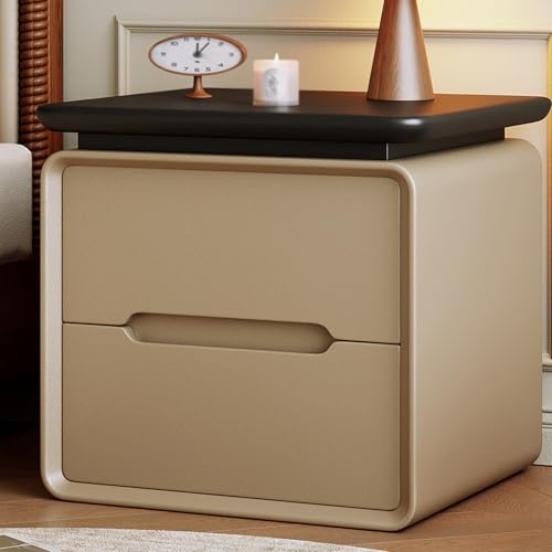 Table De Chevet Minimaliste en Cuir Microfibre avec 2 Tiroirs, Meuble De Chevet De Luxe, 45 X 40 X 48 Cm Khaki White Right