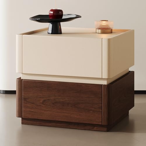 GUQASDV Table D'appoint avec 2 Tiroirs, sans Poignée, Meuble De Chevet en Bois avec Rangement for Chambre À Coucher, Salon, Couloir, Salle de Bain(Walnut+Milk Tea,19.7in/50cm)