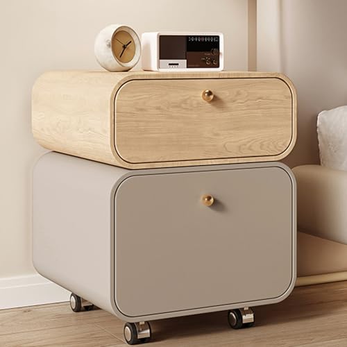 GUQASDV Table de Chevet en Bois Massif, Tables D'appoint Moderne,Meuble de Chevet avec Commode Armoire de Rangement sans Poignée for Salon, Chambre À Coucher et Bureau(Beige,17.7in/45cm)