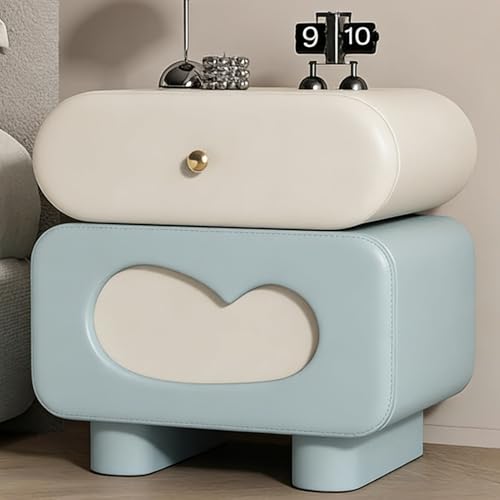 GUQASDV Table de Chevet en Bois Massif, Tables D'appoint Moderne,Meuble de Chevet avec Commode Armoire de Rangement sans Poignée for Salon, Chambre À Coucher et Bureau(Blauw,15.7in/40cm)