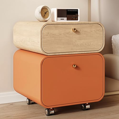 GUQASDV Table de Chevet en Bois Massif, Table D'appoint Moderne, Meuble de Chevet avec Commode Armoire de Rangement sans Poignée for Salon, Chambre À Coucher et Bureau(Orange,15.7in/40cm)
