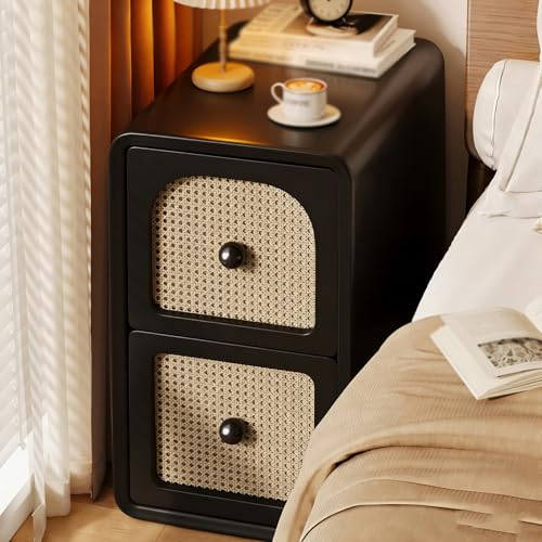 GUQASDV Table de Chevet en Bois Massif, Tables D'appoint Moderne Meuble de Chevet avec Commode, Armoire de Rangement sans Poignée for Salon, Chambre À Coucher et Bureau(Nero,17.7in/45cm)