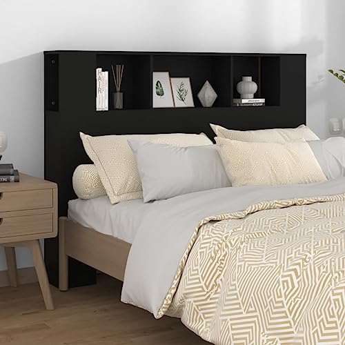 IKAYAA Tête de lit 160 avec Rangement Têtes de lit pour Adulte Meuble de Chambre à Coucher Accessoire de Lit Intérieur -Noir-160x19x103,5 cm