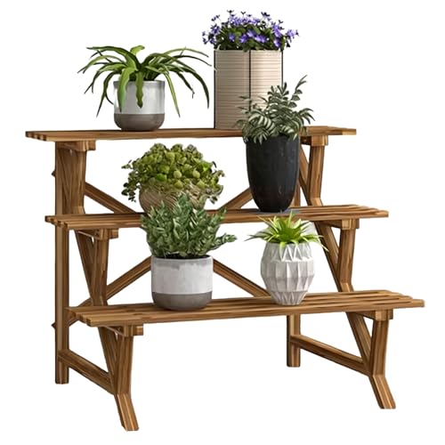 Support de plantes d'extérieur en bois massif à plusieurs niveaux – Treillis de balcon peu encombrant pour l'intérieur et l'extérieur – Meuble de rangement élégant sur pied pour jardin et chambre à