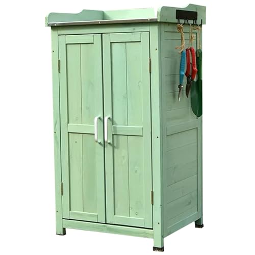 Armoire de jardin, meuble de rangement pour outils et accessoires avec étagères intérieures, bois et pvc - vert - 118x54x173 cm