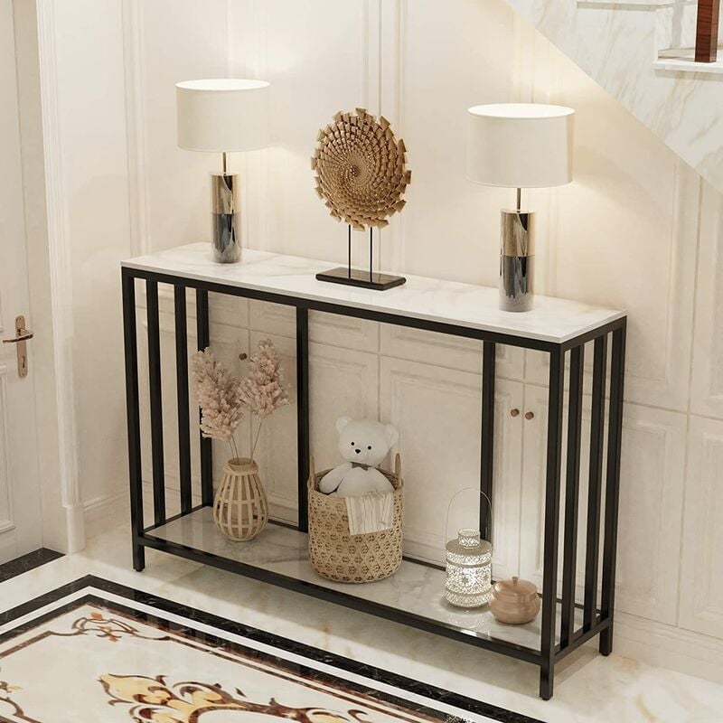 Table Console Entrée en Marbre Deux Étages Meuble d'Entrée Scandinave Pour Couloir Salon - Bentley Blanc 120x30x78cm