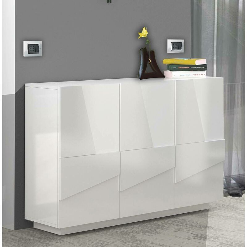 Meuble d'entrée avec 3 portes et étagères internes, Made in Italy, Hall d'entrée moderne, Buffet pour atrium, 121x38h86 cm, couleur blanc brillant,