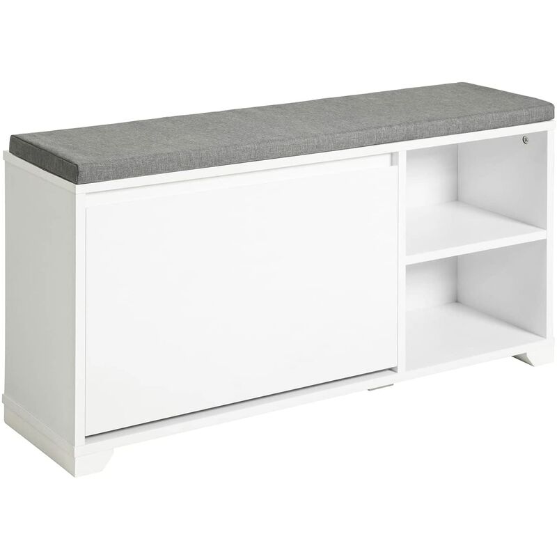 FSR119-W Banc à Chaussures Meuble d'Entrée Meuble à Chaussures avec Coussin Rembourré, 1 abattant et 2 Compartiments Ouverts, 90x24x46cm, Blanc