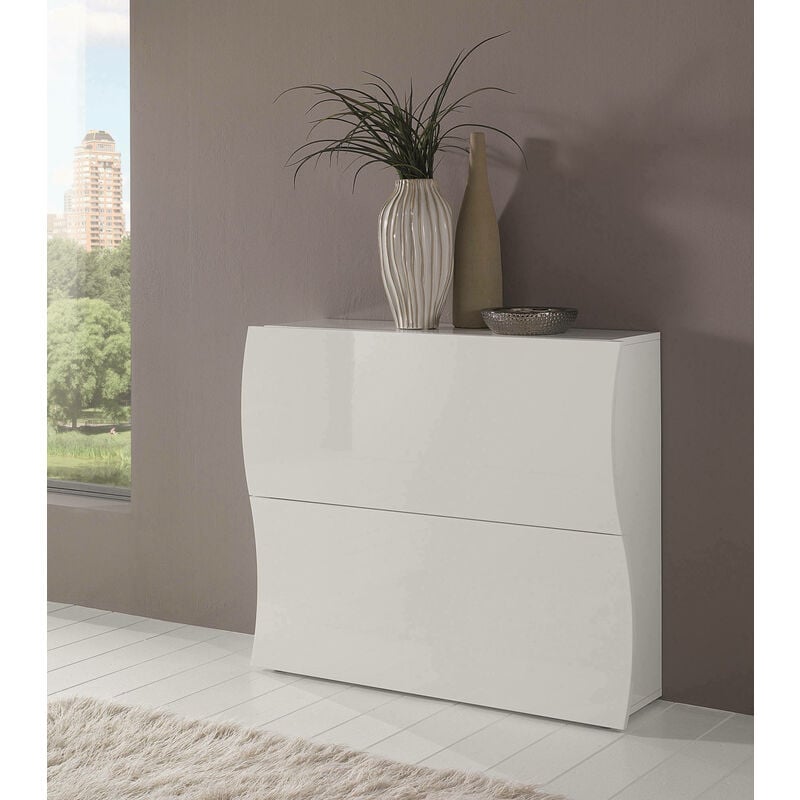 Dmora - Meuble à chaussures Dfogl, Armoire polyvalente à 2 portes, Porte-chaussures d'entrée, 100% Made in Italy, 81x38h86 cm, Blanc brillant avec