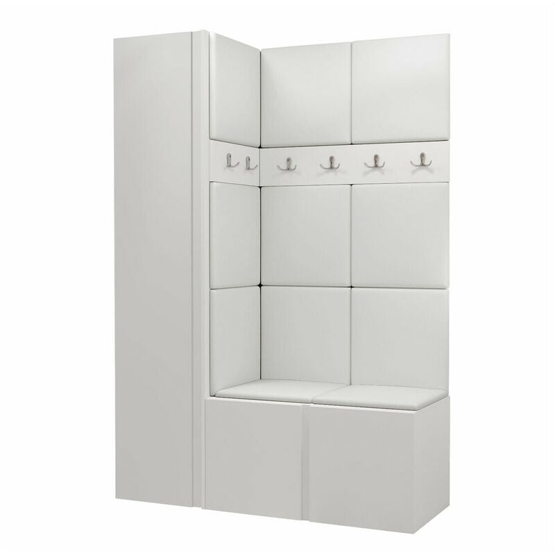 Mobilier1 - Meuble d'entrée Hartford 471, Blanc, 186x124x44cm, Stratifié, Faux cuir, à suspendre, à poser