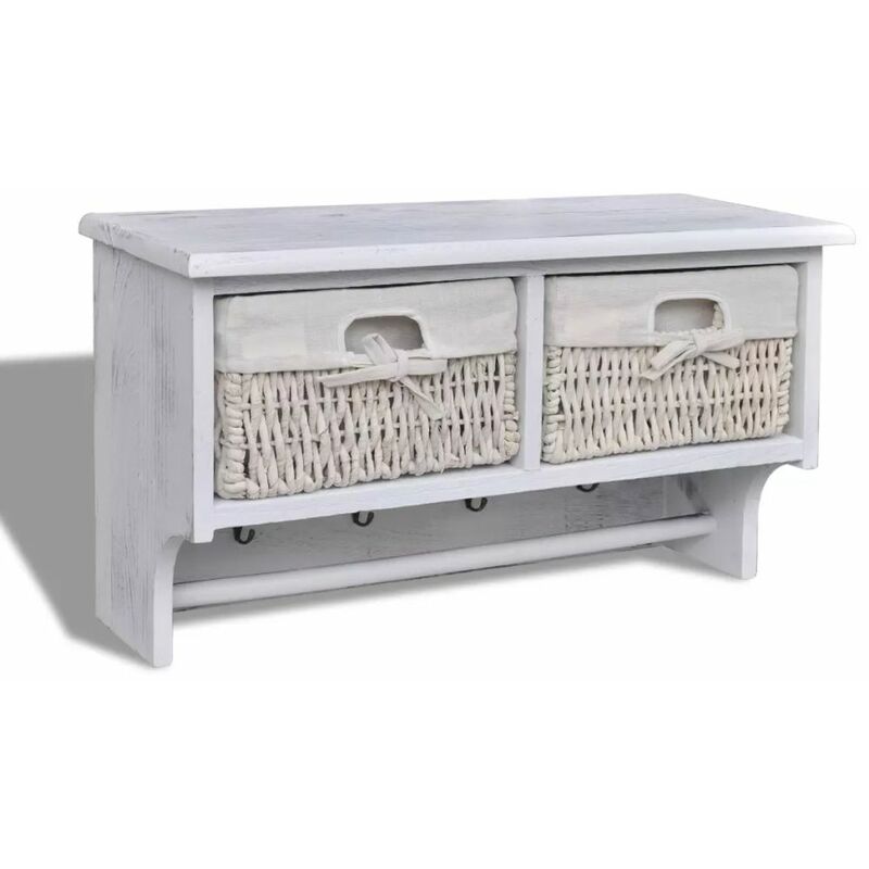Décoshop26 - Porte-manteau blanc meuble d'entrée panier rangement avec 4 crochets 60x23,5x33 cm Bois de Paulownia DEC024177