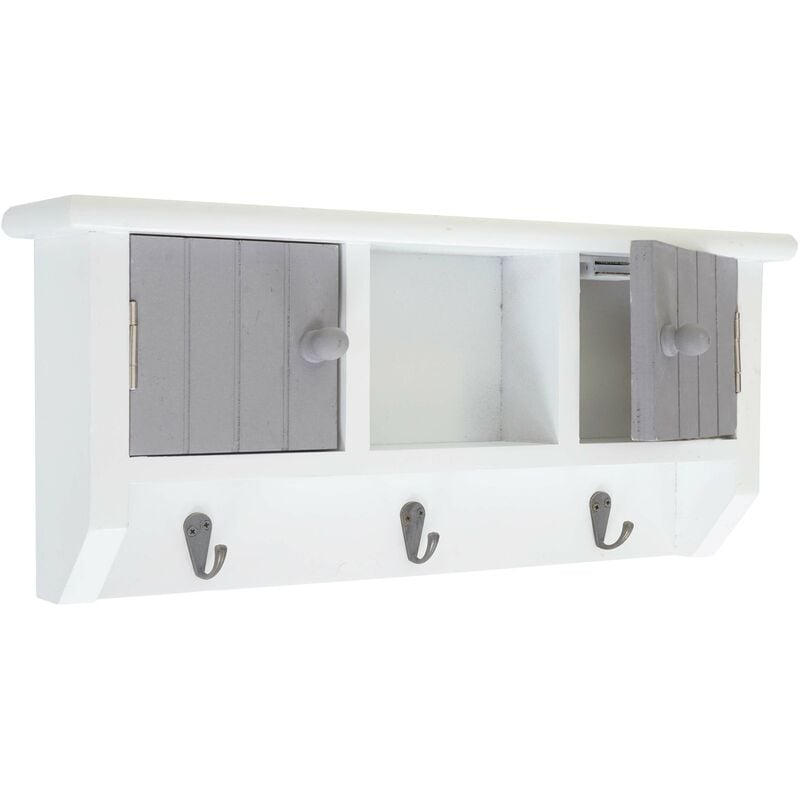 Décoshop26 - Porte-clés meuble d'entrée mural avec portes et étagère en bois massif gris-blanc 040003587