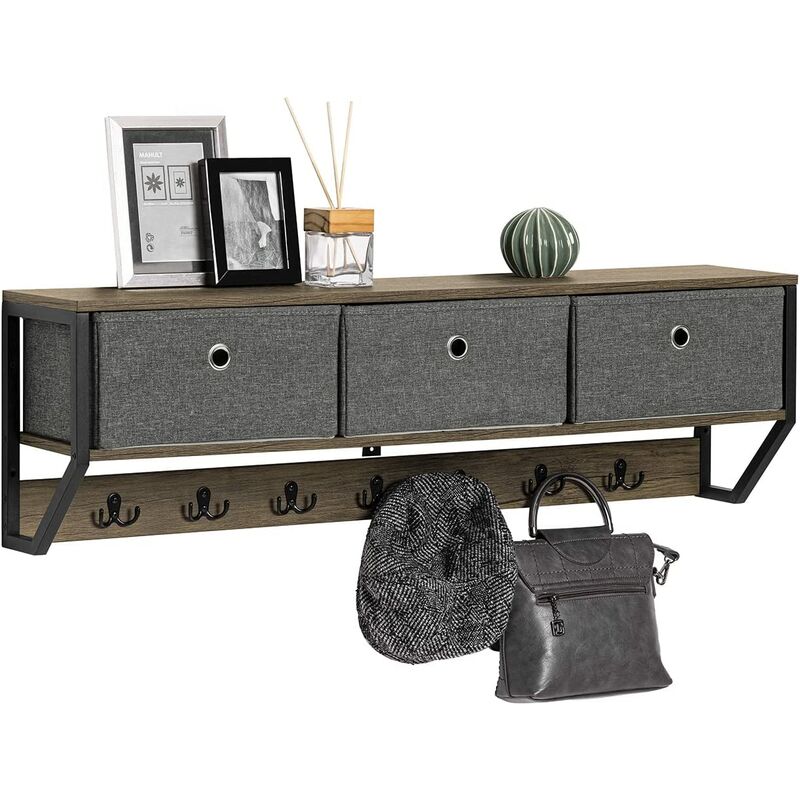 Portemanteau meuble d'entrée design mural avec étagère de rangement 110 x 30 x 27 cm noir 03_0010391