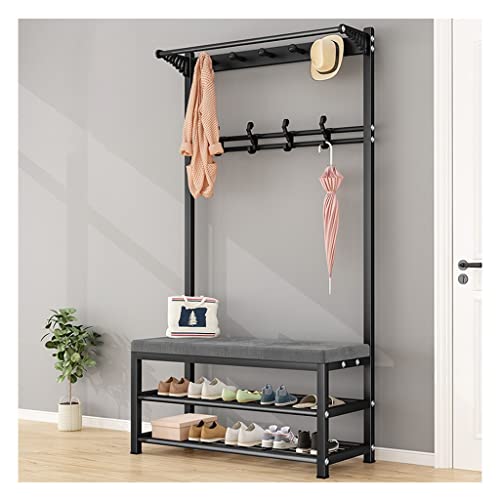 Porte-Manteau en métal avec Banc et étagère à Chaussures, 7 à 11 Crochets, Meuble d'entrée pour Chambre, Couloir ou Salon (Couleur : Noir/Gris, Taille : 80 cm)