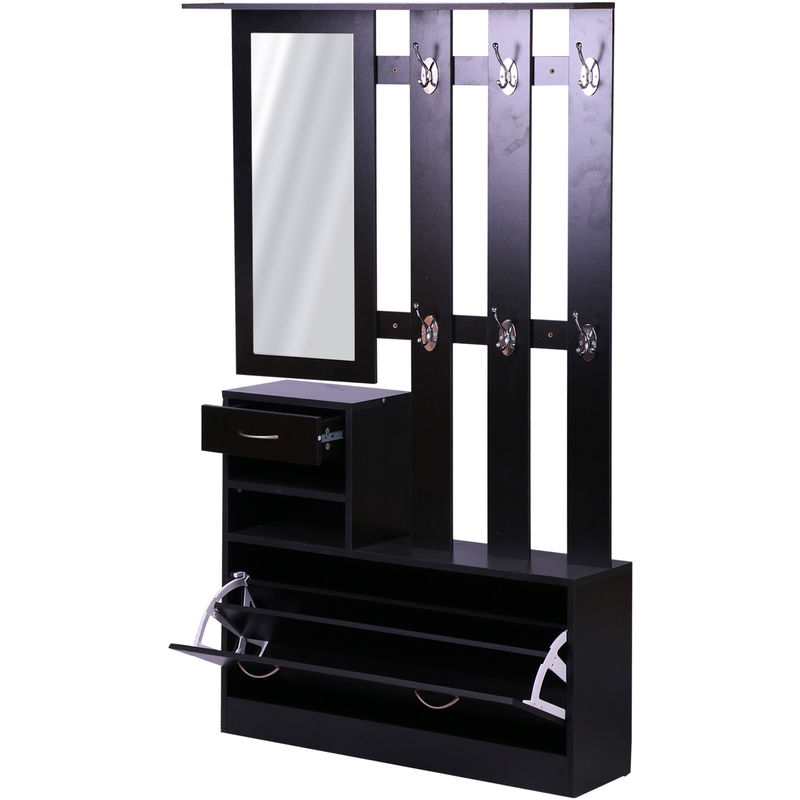 Portemanteau meuble d'entrée design mural avec étagère de rangement 110 x 30 x 27 cm noir 03_0010391