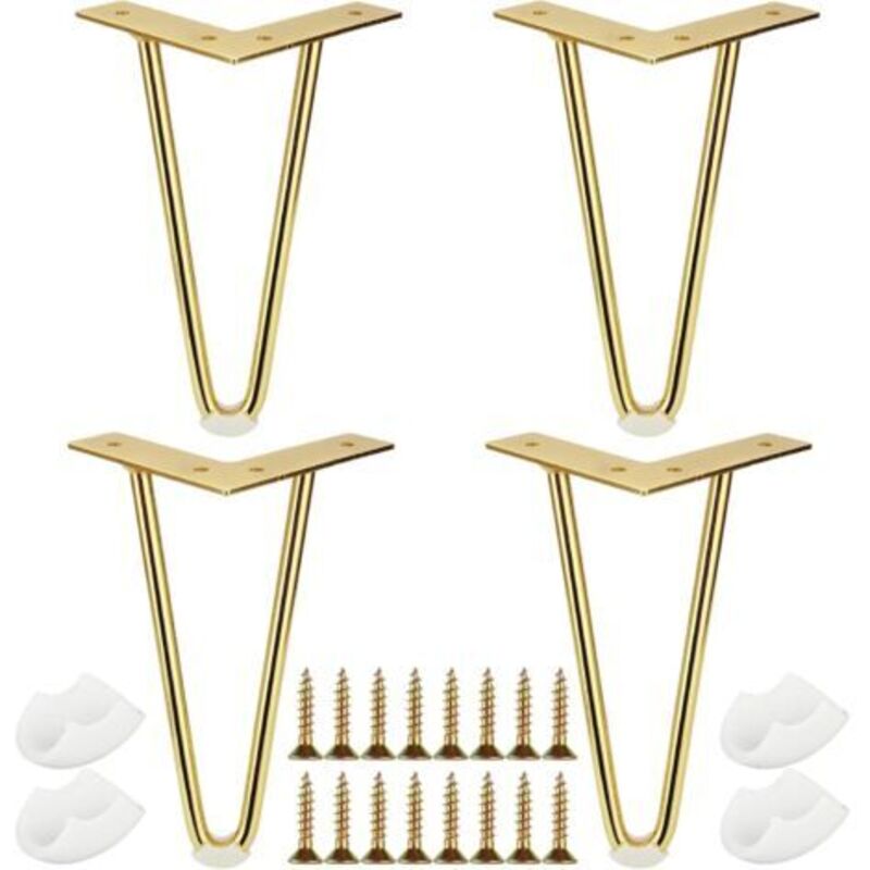 Ccykxa - Lo de 2 Pied de Meuble Doré 20 cm Pieds de Table en Épingle à Cheveux avec Vis et Rotège Pieds Pied de Table Metal Doré Pied Table Basse
